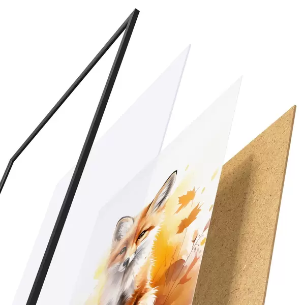 Plagát sa skladá z rámu, plexiskla, vytlačeného obrazu a podkladu z drevotriesky. Plagát možno okamžite zavesiť na stenu vďaka úchytom na zadnej strane.
