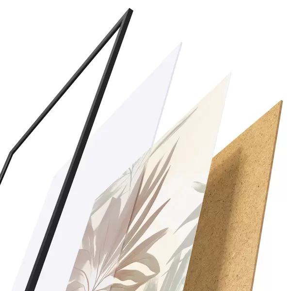 Plagát sa skladá z rámu, plexiskla, vytlačeného obrazu a podkladu z drevotriesky. Plagát možno okamžite zavesiť na stenu vďaka úchytom na zadnej strane.