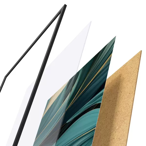 Plagát sa skladá z rámu, plexiskla, vytlačeného obrazu a podkladu z drevotriesky. Plagát možno okamžite zavesiť na stenu vďaka úchytom na zadnej strane.