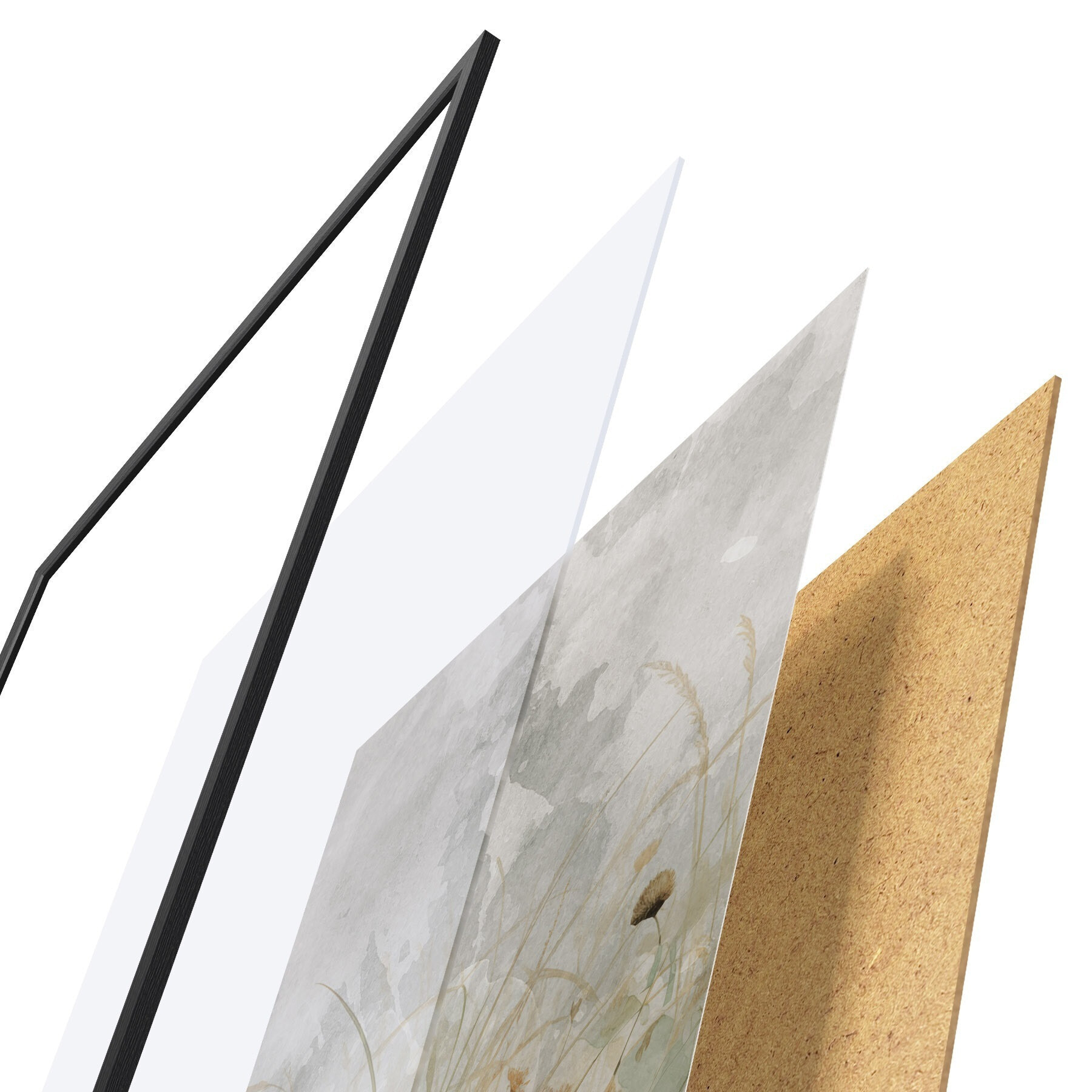 Plagát sa skladá z rámu, plexiskla, vytlačeného obrazu a podkladu z drevotriesky. Plagát možno okamžite zavesiť na stenu vďaka úchytom na zadnej strane.