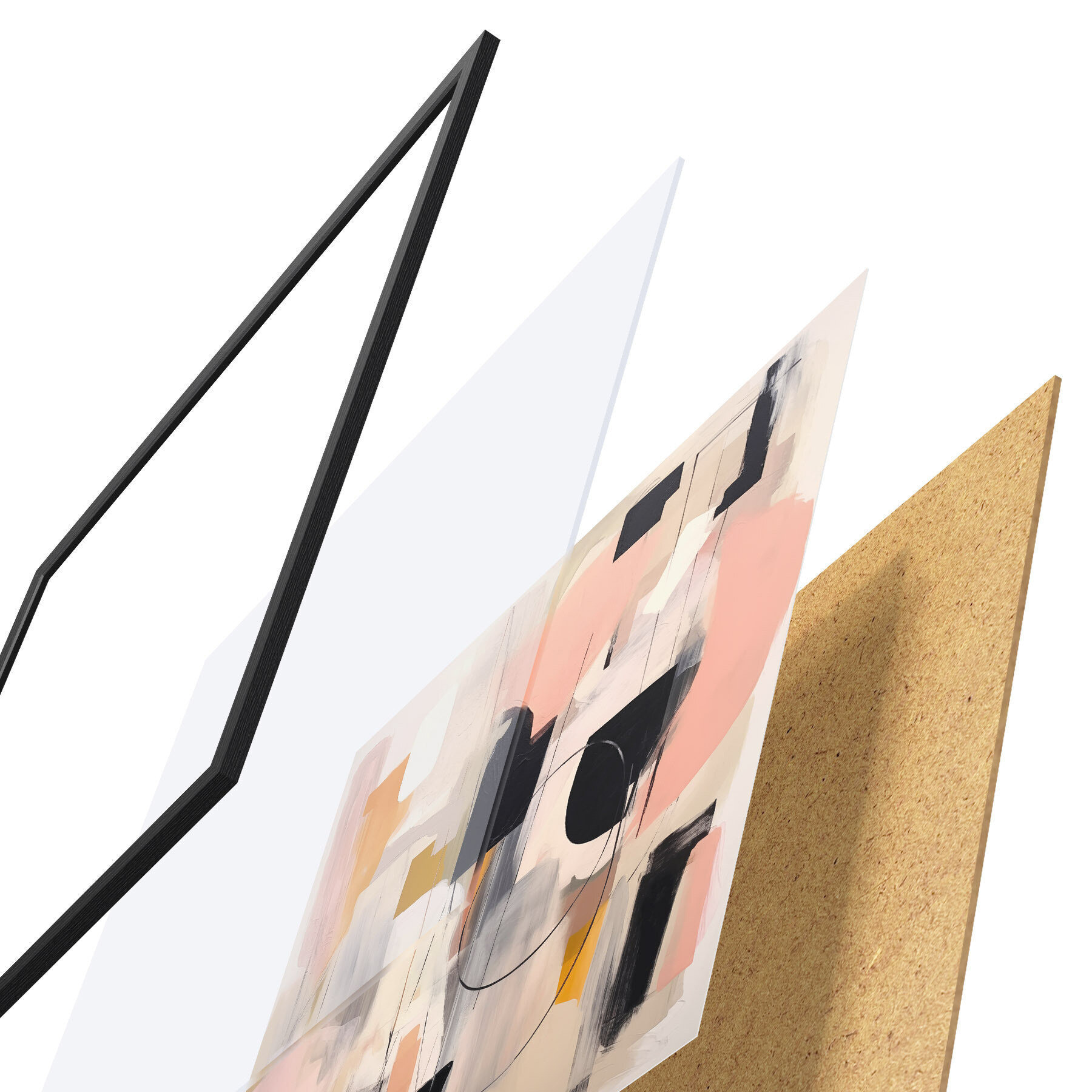 Plagát sa skladá z rámu, plexiskla, vytlačeného obrazu a podkladu z drevotriesky. Plagát možno okamžite zavesiť na stenu vďaka úchytom na zadnej strane.