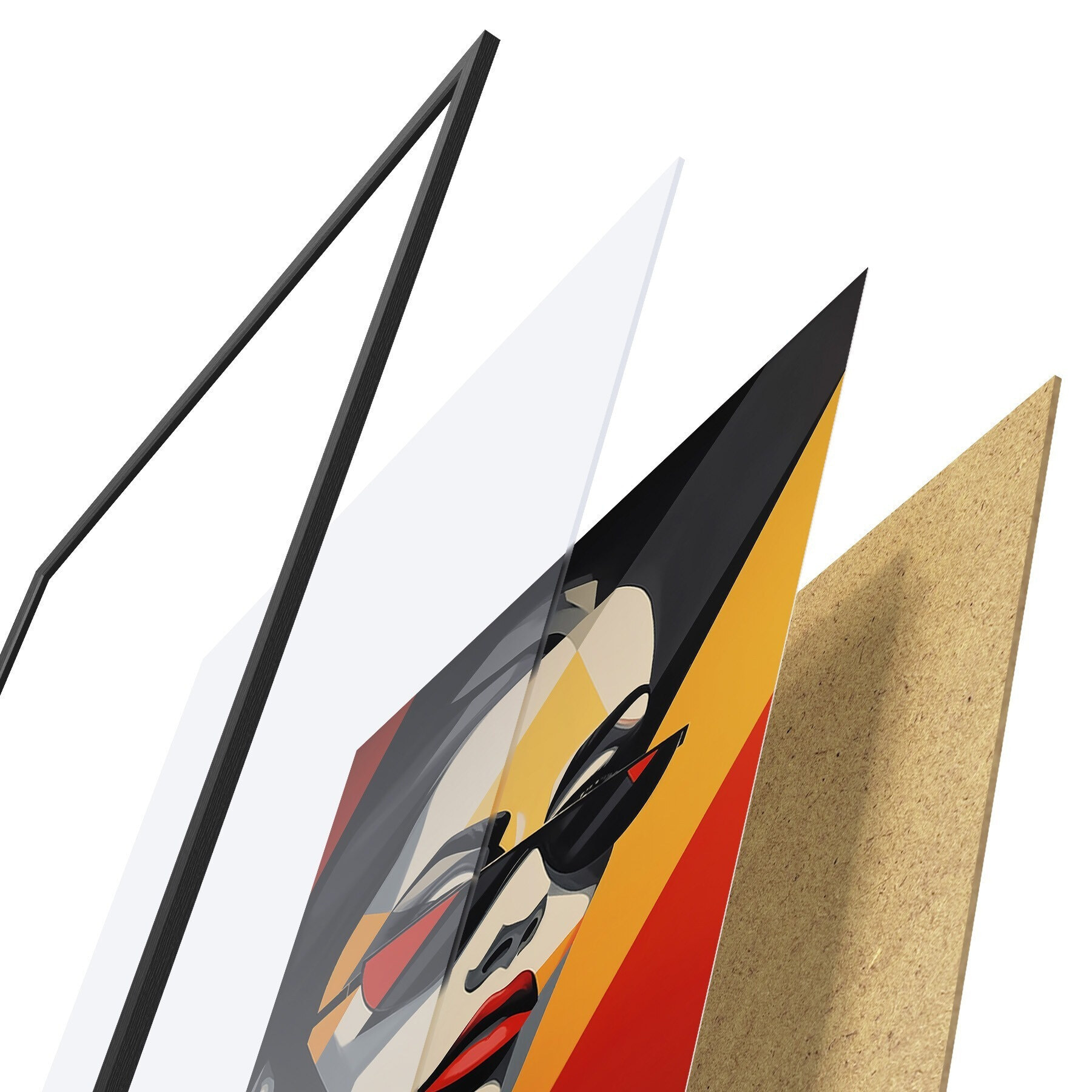 Plagát sa skladá z rámu, plexiskla, vytlačeného obrazu a podkladu z drevotriesky. Plagát možno okamžite zavesiť na stenu vďaka úchytom na zadnej strane.