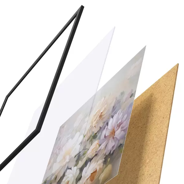 Plagát sa skladá z rámu, plexiskla, vytlačeného obrazu a podkladu z drevotriesky. Plagát možno okamžite zavesiť na stenu vďaka úchytom na zadnej strane.