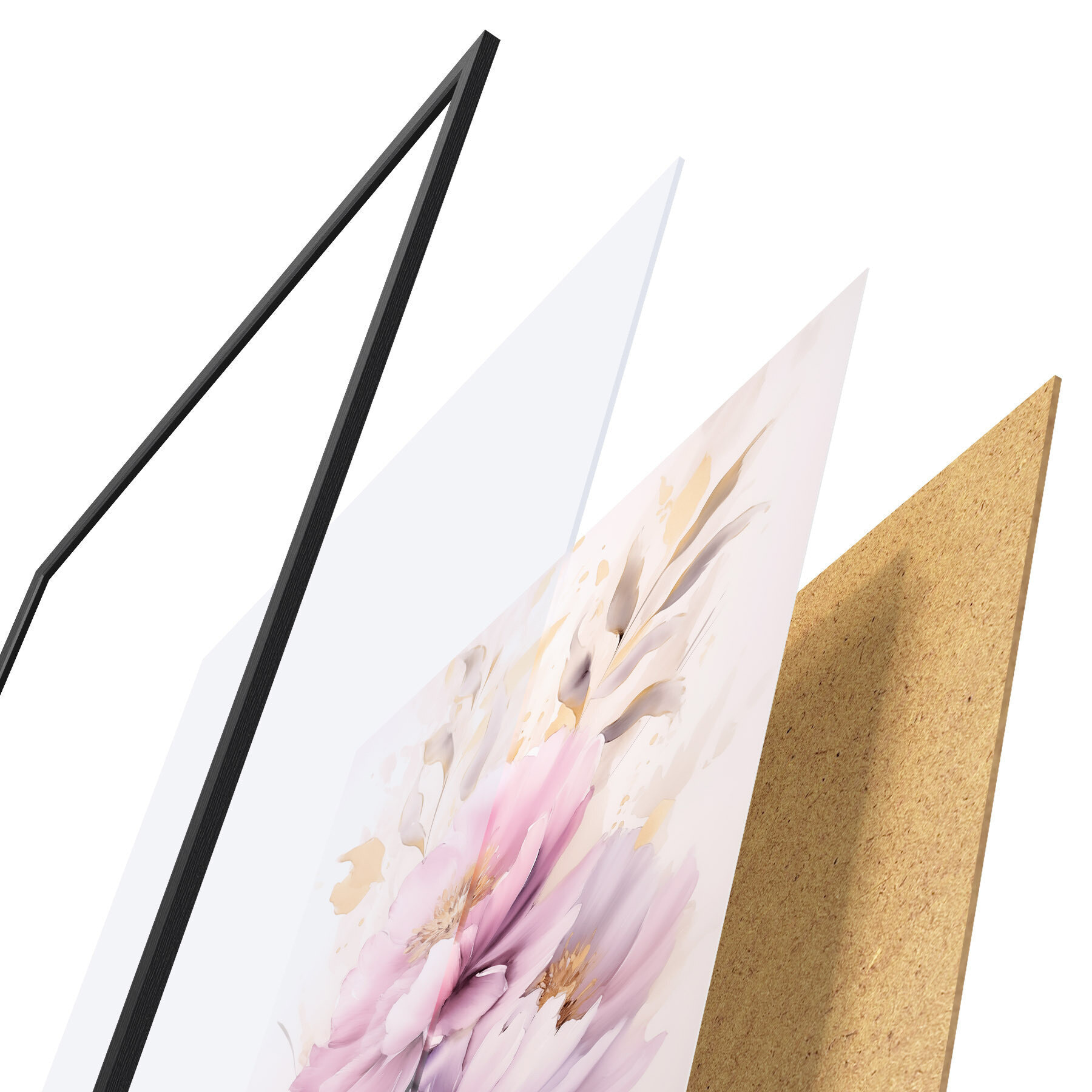 Plagát sa skladá z rámu, plexiskla, vytlačeného obrazu a podkladu z drevotriesky. Plagát možno okamžite zavesiť na stenu vďaka úchytom na zadnej strane.