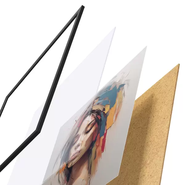 Plagát sa skladá z rámu, plexiskla, vytlačeného obrazu a podkladu z drevotriesky. Plagát možno okamžite zavesiť na stenu vďaka úchytom na zadnej strane.