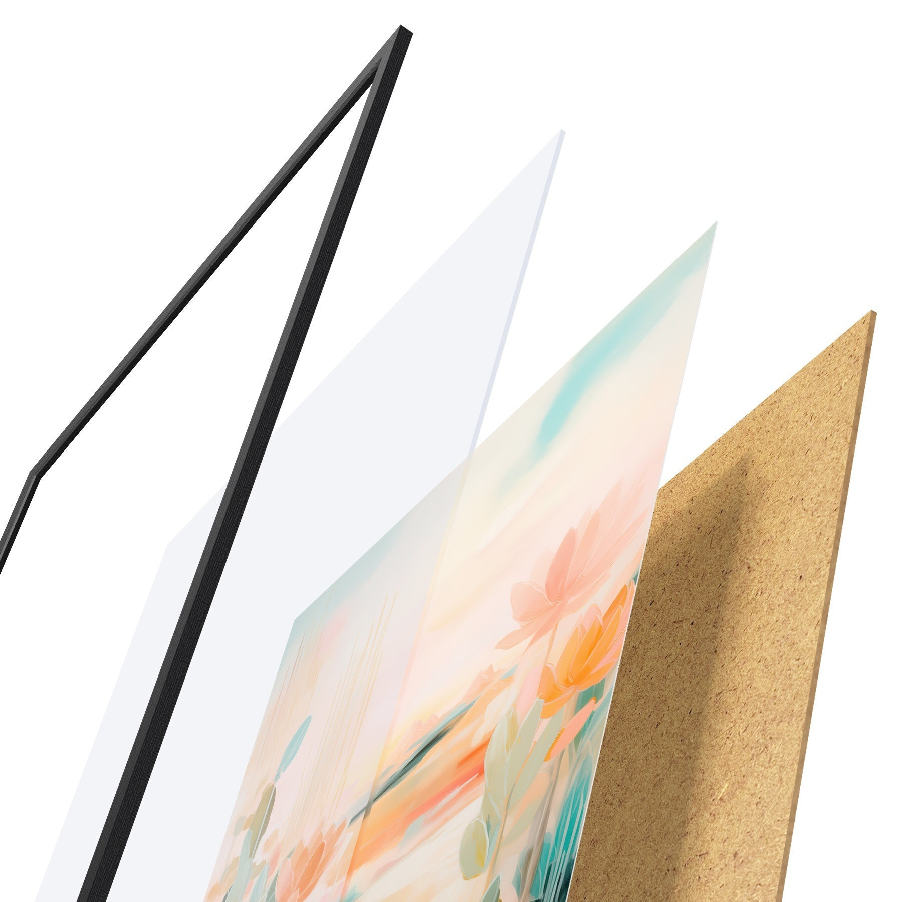 Plagát sa skladá z rámu, plexiskla, vytlačeného obrazu a podkladu z drevotriesky. Plagát možno okamžite zavesiť na stenu vďaka úchytom na zadnej strane.
