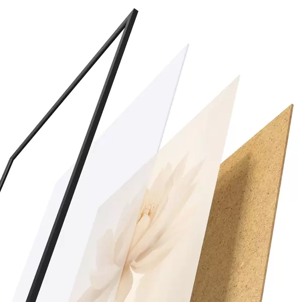 Plagát sa skladá z rámu, plexiskla, vytlačeného obrazu a podkladu z drevotriesky. Plagát možno okamžite zavesiť na stenu vďaka úchytom na zadnej strane.