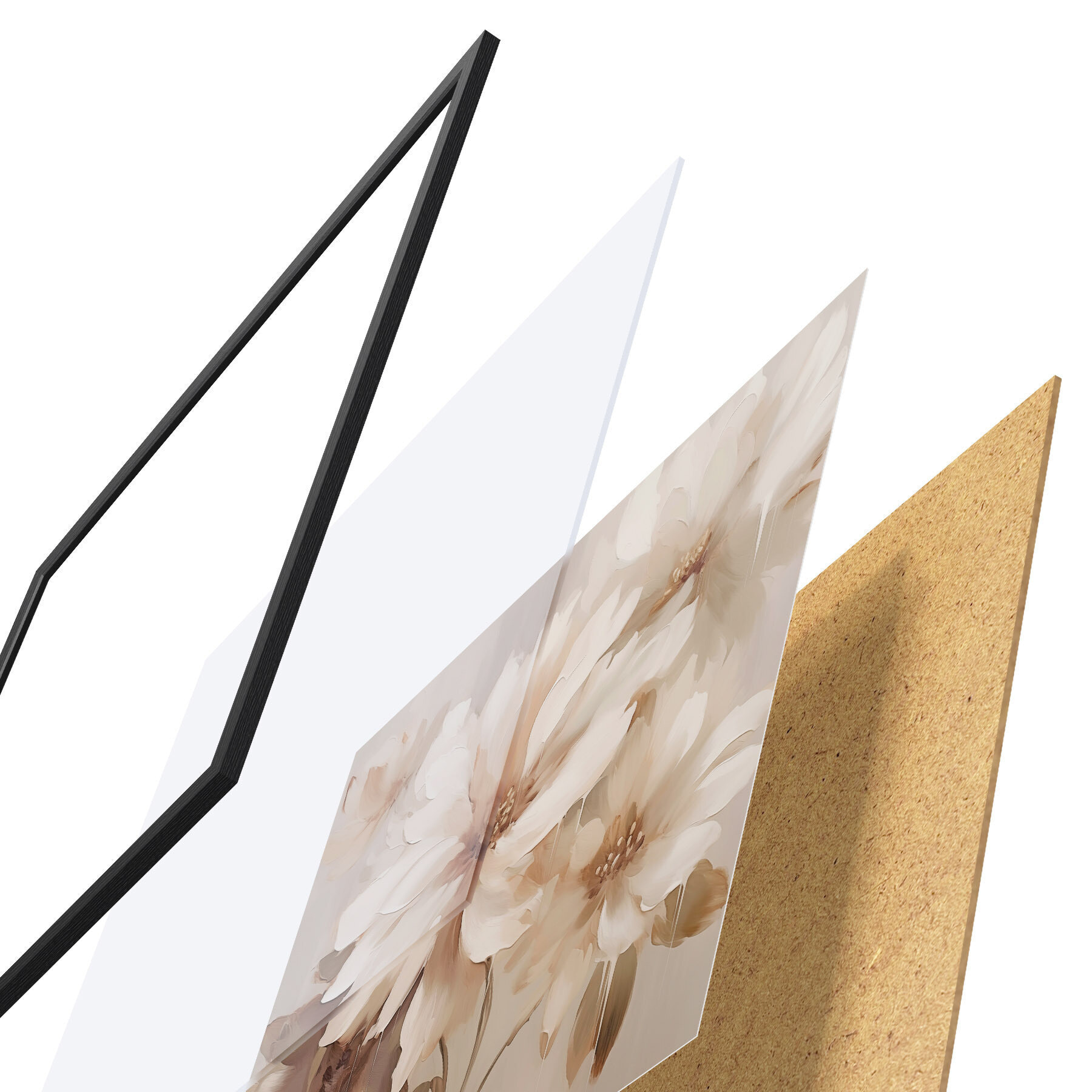 Plagát sa skladá z rámu, plexiskla, vytlačeného obrazu a podkladu z drevotriesky. Plagát možno okamžite zavesiť na stenu vďaka úchytom na zadnej strane.