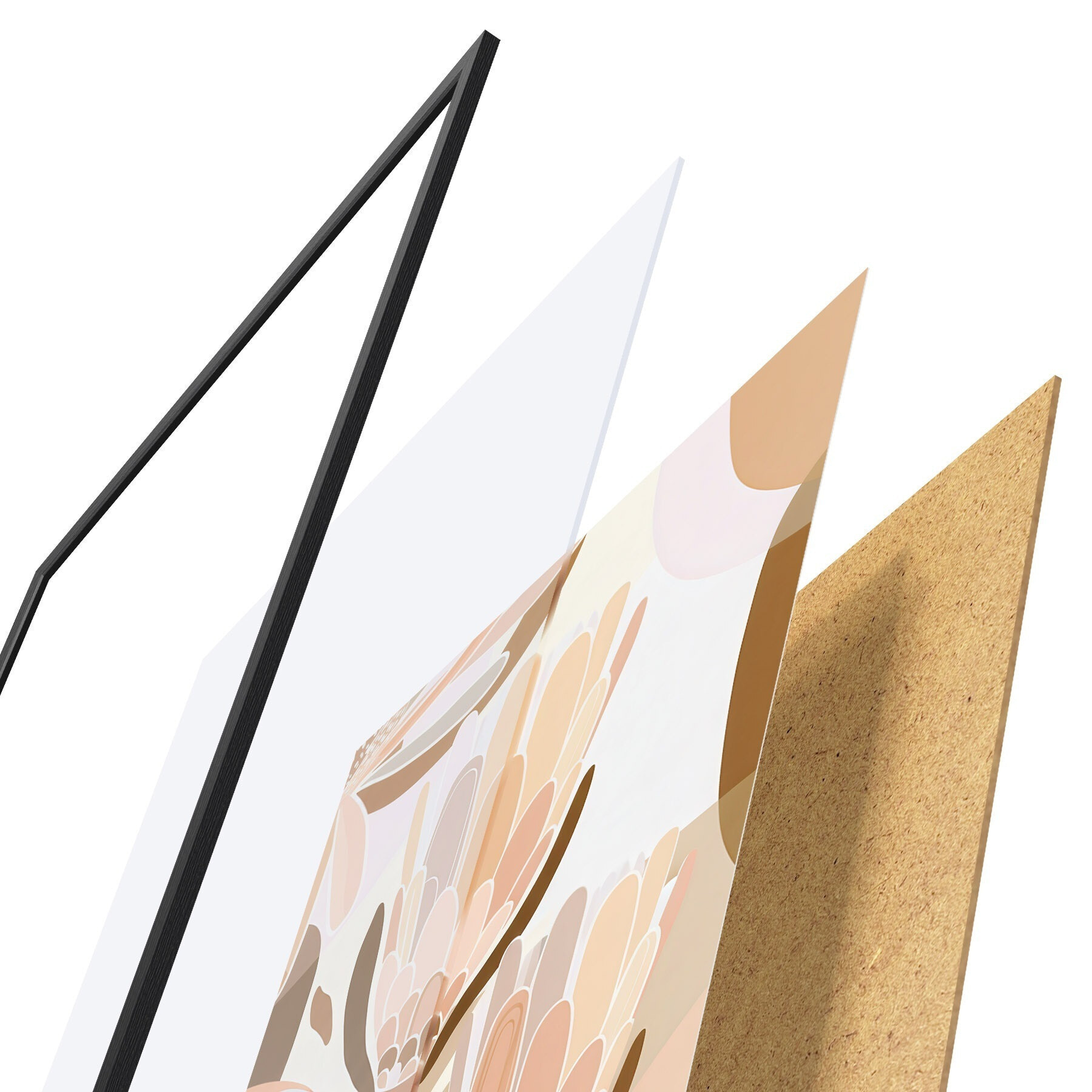 Plagát sa skladá z rámu, plexiskla, vytlačeného obrazu a podkladu z drevotriesky. Plagát možno okamžite zavesiť na stenu vďaka úchytom na zadnej strane.