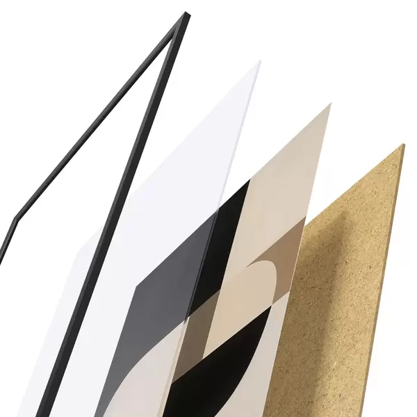 Plagát sa skladá z rámu, plexiskla, vytlačeného obrazu a podkladu z drevotriesky. Plagát možno okamžite zavesiť na stenu vďaka úchytom na zadnej strane.