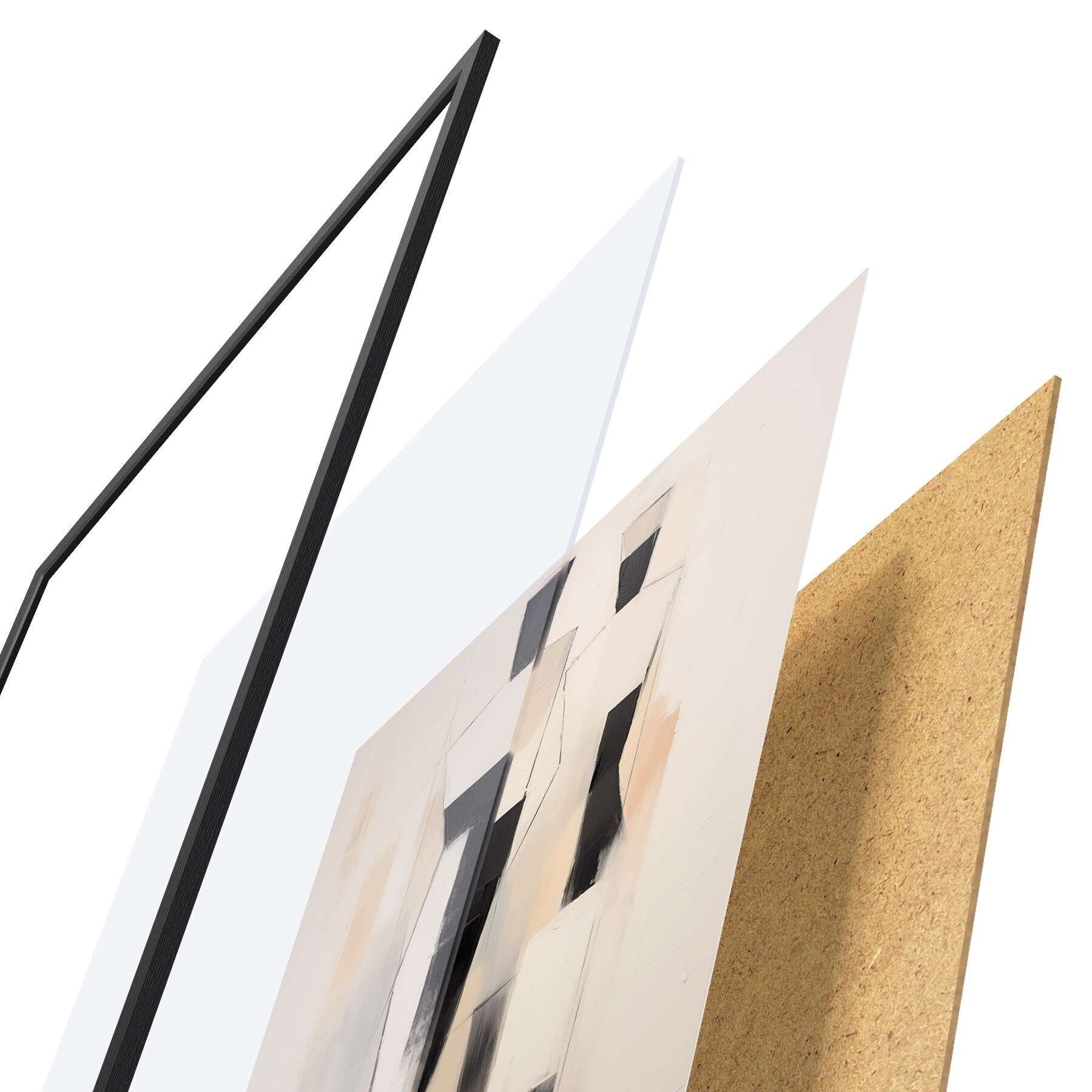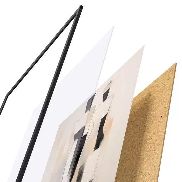 Plagát sa skladá z rámu, plexiskla, vytlačeného obrazu a podkladu z drevotriesky. Plagát možno okamžite zavesiť na stenu vďaka úchytom na zadnej strane.
