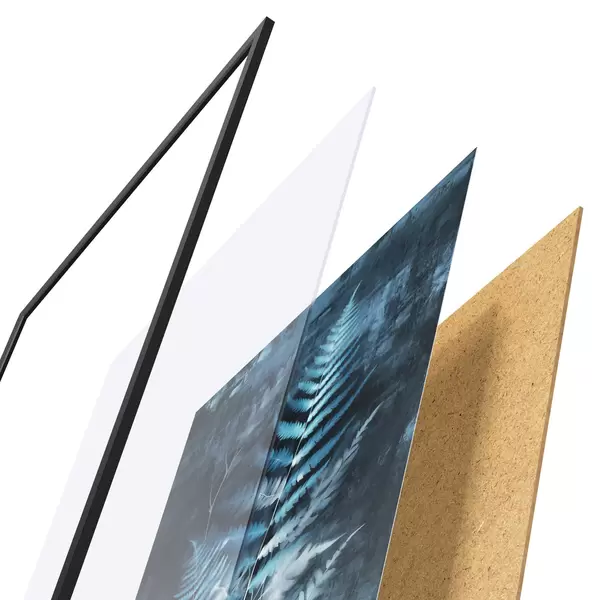 Plagát sa skladá z rámu, plexiskla, vytlačeného obrazu a podkladu z drevotriesky. Plagát možno okamžite zavesiť na stenu vďaka úchytom na zadnej strane.