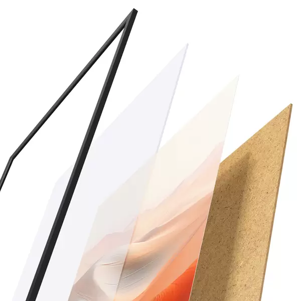 Plagát sa skladá z rámu, plexiskla, vytlačeného obrazu a podkladu z drevotriesky. Plagát možno okamžite zavesiť na stenu vďaka úchytom na zadnej strane.