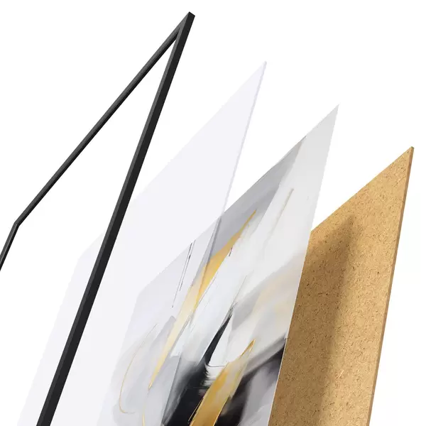 Plagát sa skladá z rámu, plexiskla, vytlačeného obrazu a podkladu z drevotriesky. Plagát možno okamžite zavesiť na stenu vďaka úchytom na zadnej strane.