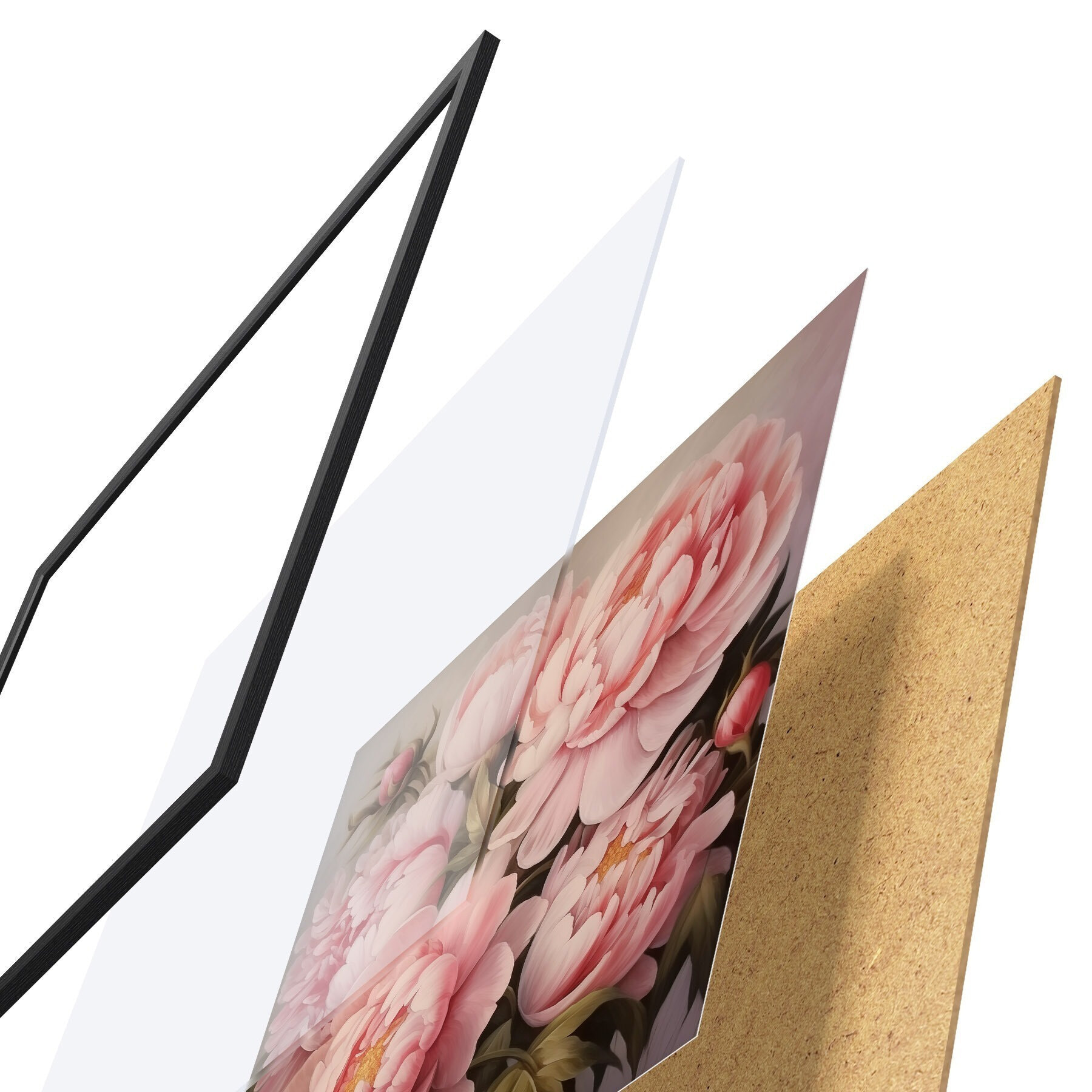 Plagát sa skladá z rámu, plexiskla, vytlačeného obrazu a podkladu z drevotriesky. Plagát možno okamžite zavesiť na stenu vďaka úchytom na zadnej strane.