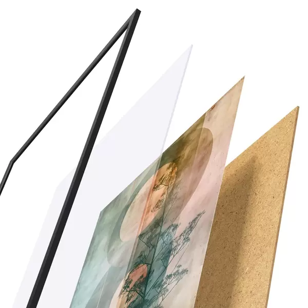 Plagát sa skladá z rámu, plexiskla, vytlačeného obrazu a podkladu z drevotriesky. Plagát možno okamžite zavesiť na stenu vďaka úchytom na zadnej strane.
