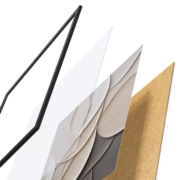 Plagát sa skladá z rámu, plexiskla, vytlačeného obrazu a podkladu z drevotriesky. Plagát možno okamžite zavesiť na stenu vďaka úchytom na zadnej strane.