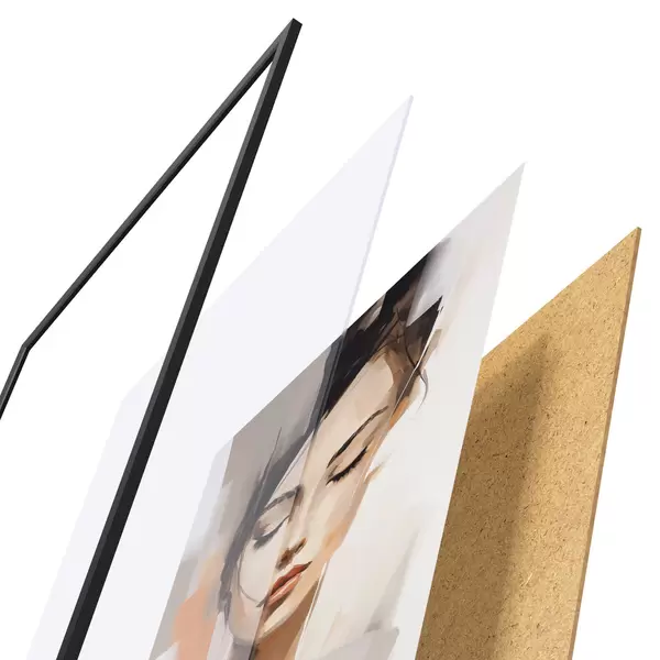 Plagát sa skladá z rámu, plexiskla, vytlačeného obrazu a podkladu z drevotriesky. Plagát možno okamžite zavesiť na stenu vďaka úchytom na zadnej strane.