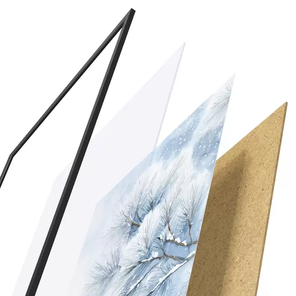 Plagát sa skladá z rámu, plexiskla, vytlačeného obrazu a podkladu z drevotriesky. Plagát možno okamžite zavesiť na stenu vďaka úchytom na zadnej strane.