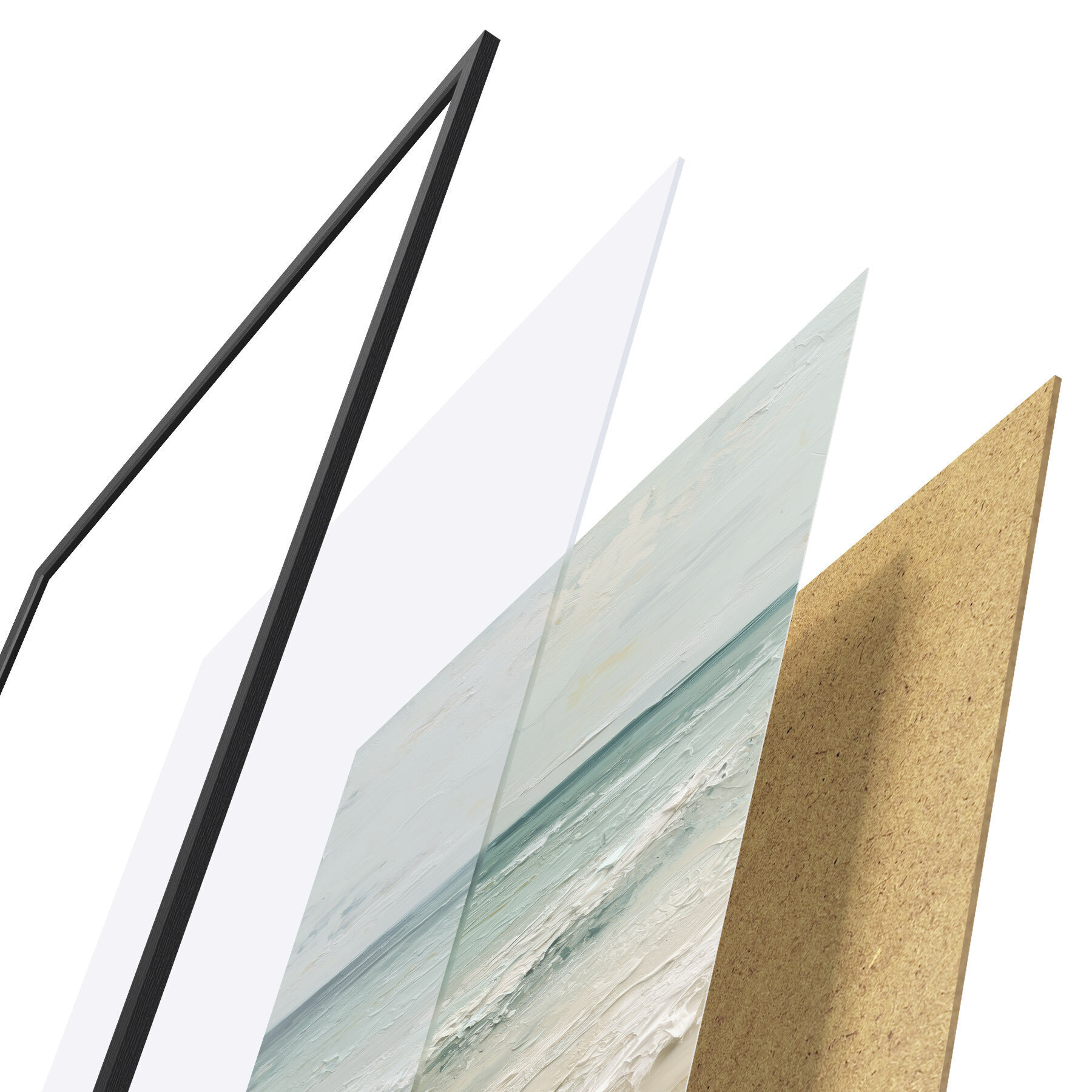 Plagát sa skladá z rámu, plexiskla, vytlačeného obrazu a podkladu z drevotriesky. Plagát možno okamžite zavesiť na stenu vďaka úchytom na zadnej strane.