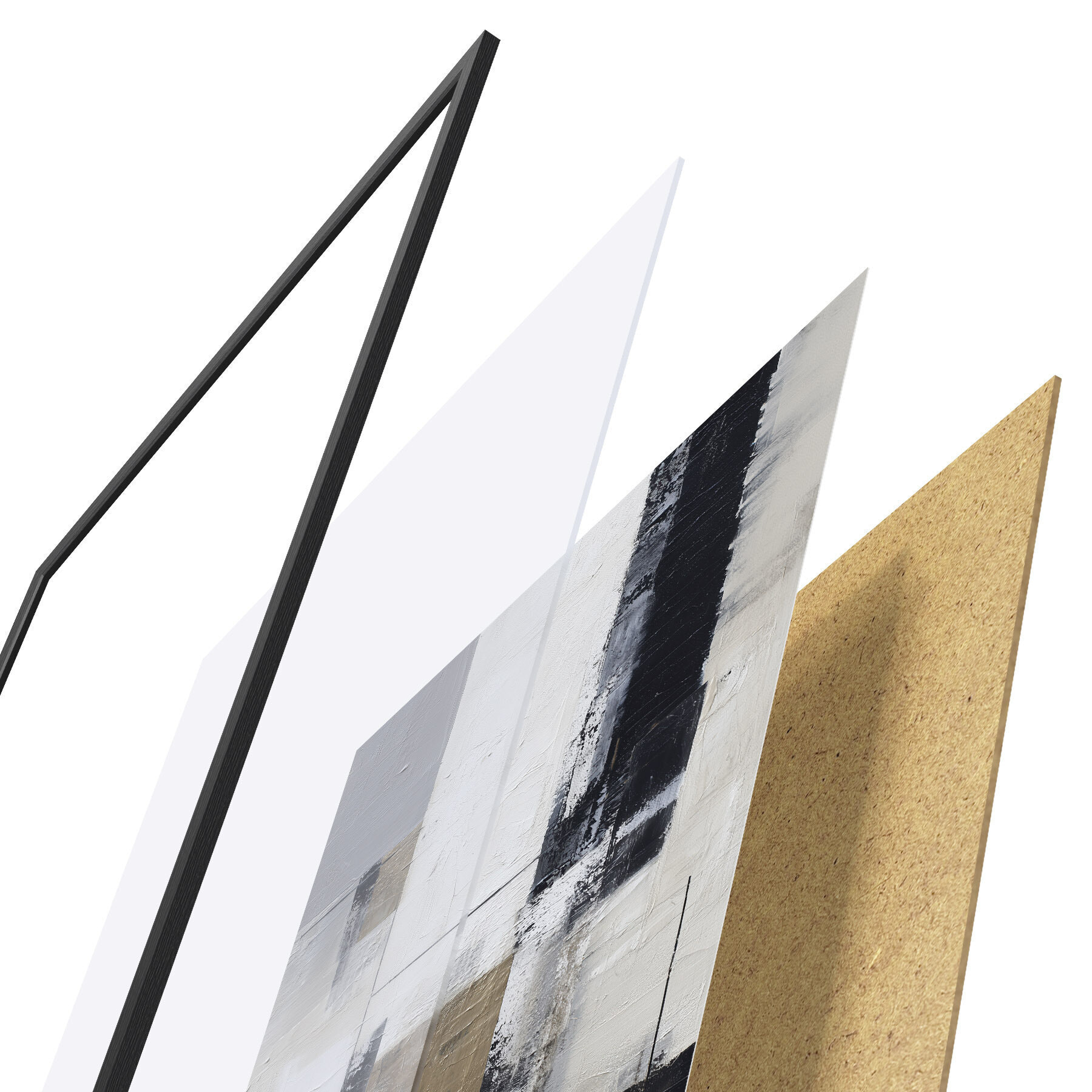 Plagát sa skladá z rámu, plexiskla, vytlačeného obrazu a podkladu z drevotriesky. Plagát možno okamžite zavesiť na stenu vďaka úchytom na zadnej strane.