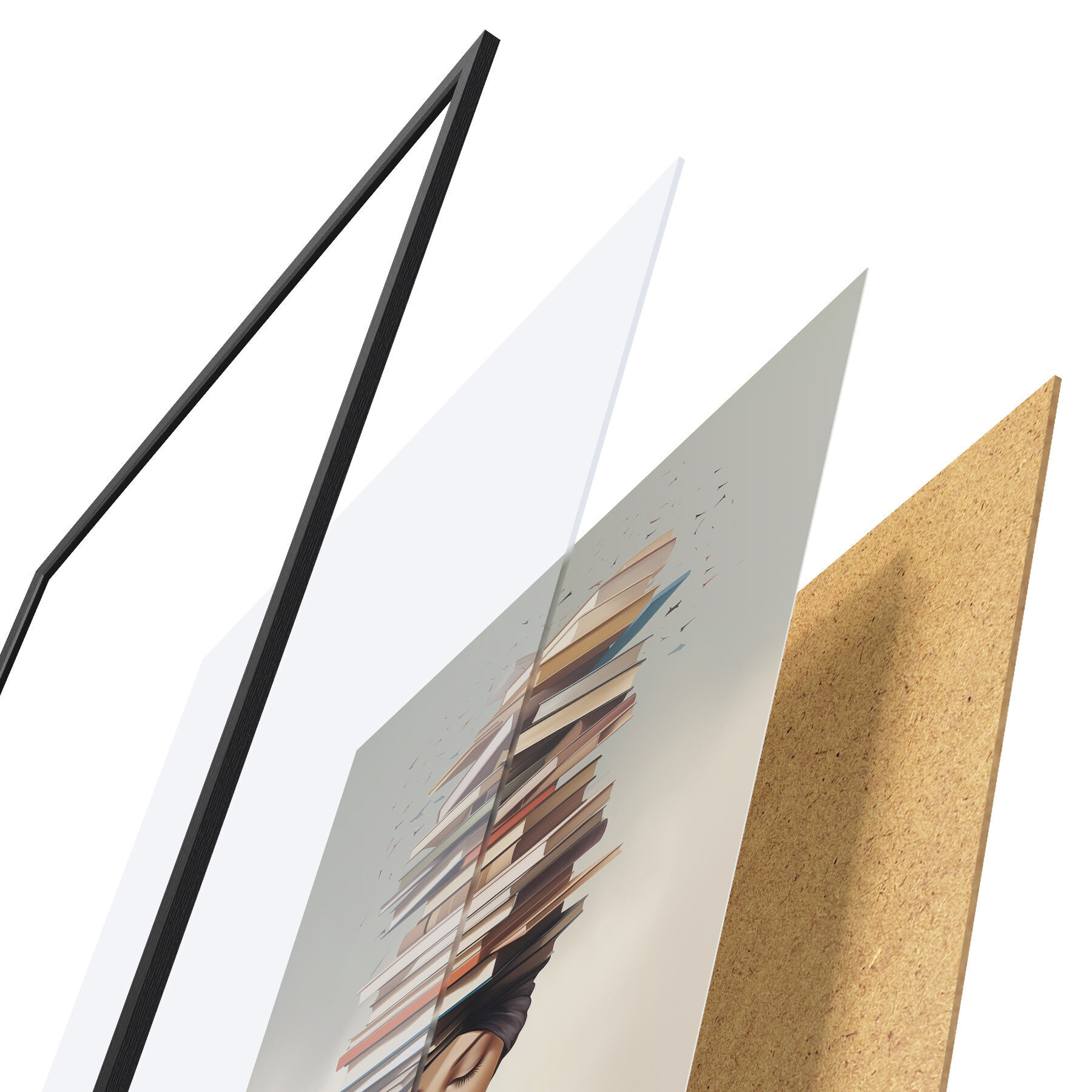 Plagát sa skladá z rámu, plexiskla, vytlačeného obrazu a podkladu z drevotriesky. Plagát možno okamžite zavesiť na stenu vďaka úchytom na zadnej strane.
