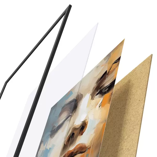 Plagát sa skladá z rámu, plexiskla, vytlačeného obrazu a podkladu z drevotriesky. Plagát možno okamžite zavesiť na stenu vďaka úchytom na zadnej strane.
