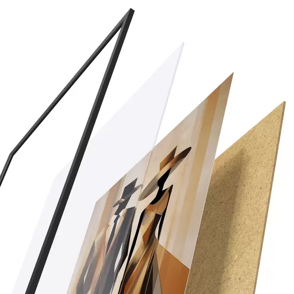 Plagát sa skladá z rámu, plexiskla, vytlačeného obrazu a podkladu z drevotriesky. Plagát možno okamžite zavesiť na stenu vďaka úchytom na zadnej strane.