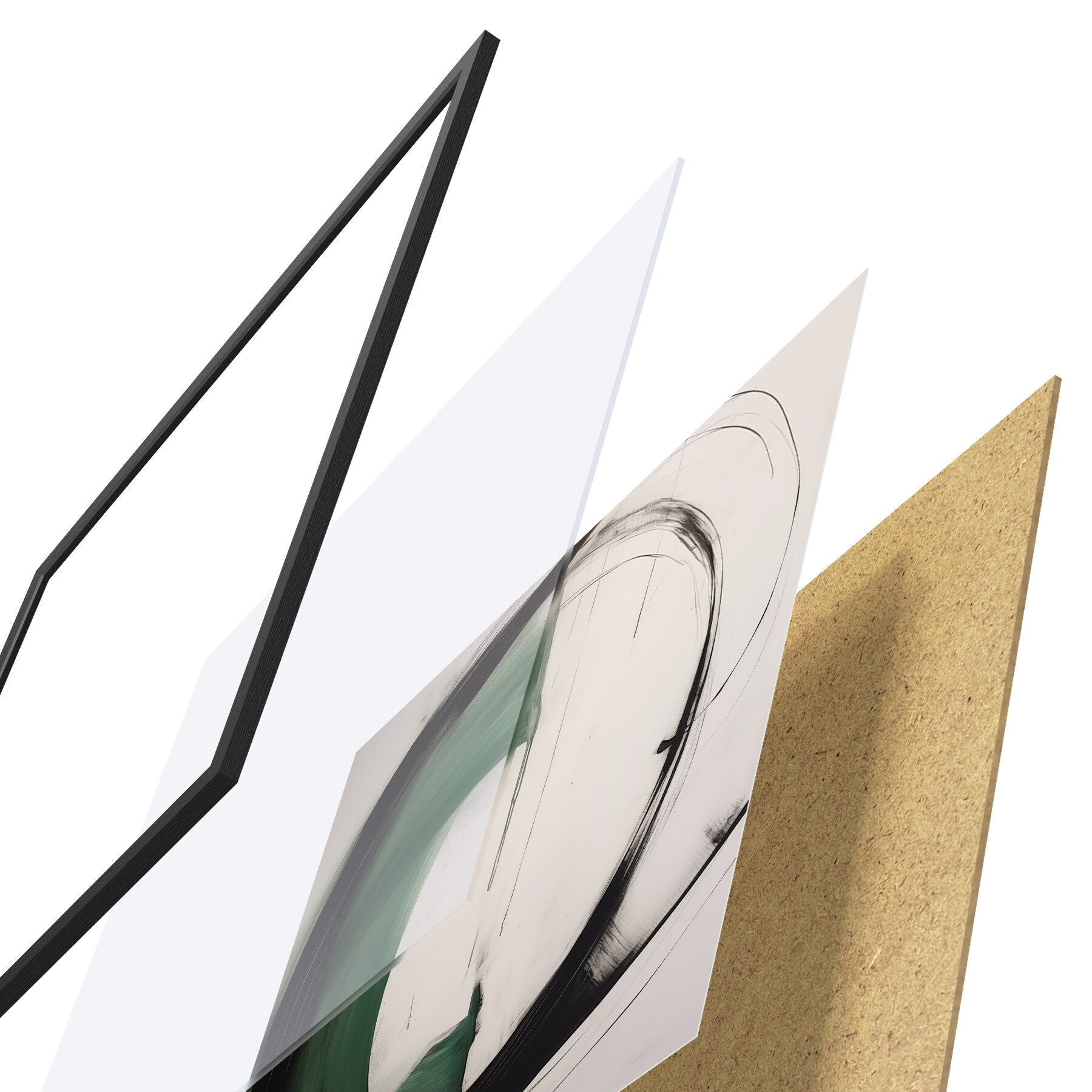 Plagát sa skladá z rámu, plexiskla, vytlačeného obrazu a podkladu z drevotriesky. Plagát možno okamžite zavesiť na stenu vďaka úchytom na zadnej strane.