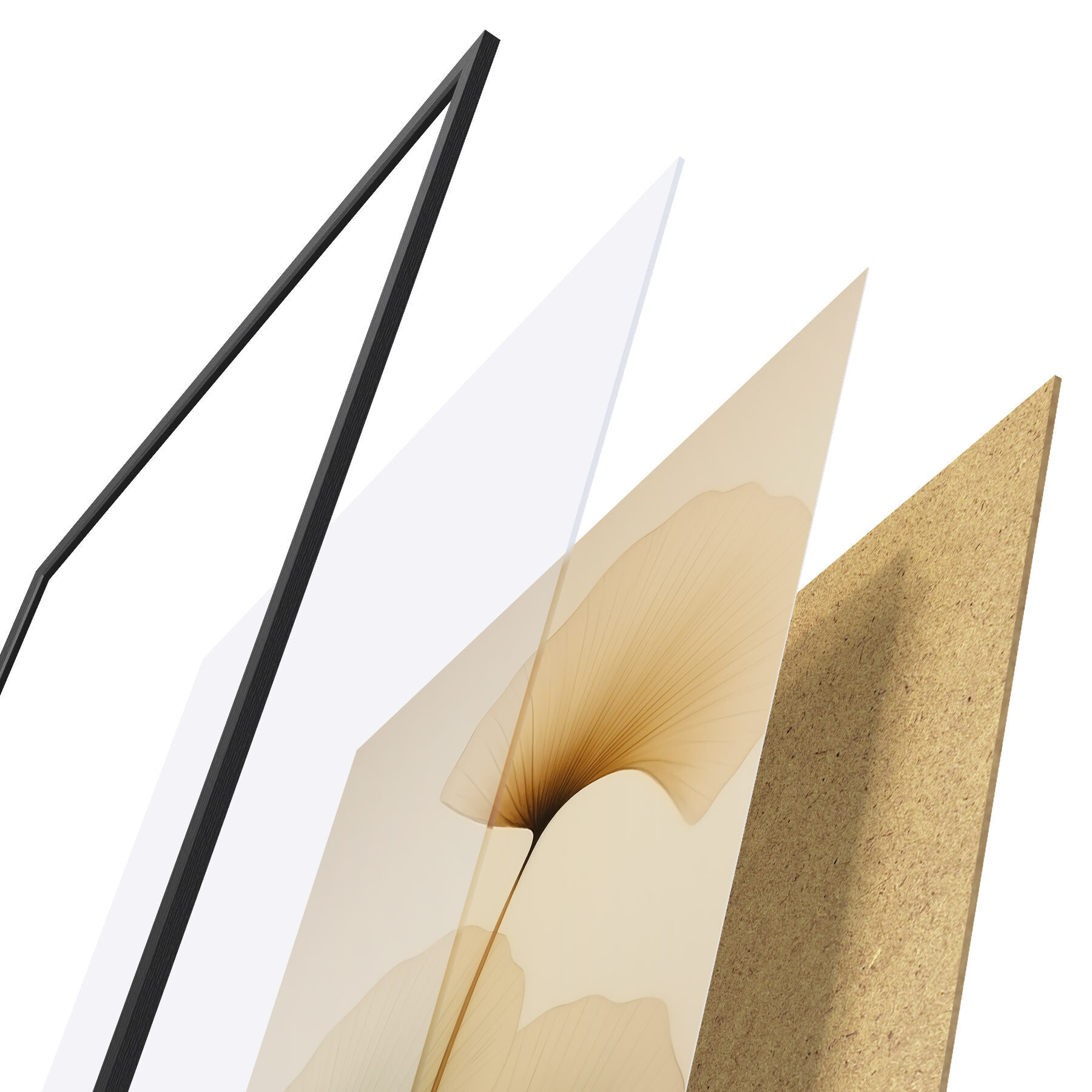 Plagát sa skladá z rámu, plexiskla, vytlačeného obrazu a podkladu z drevotriesky. Plagát možno okamžite zavesiť na stenu vďaka úchytom na zadnej strane.