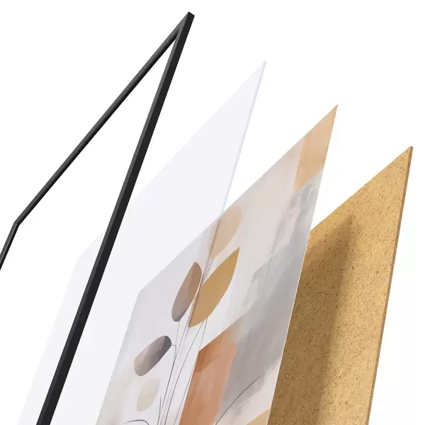 Plagát sa skladá z rámu, plexiskla, vytlačeného obrazu a podkladu z drevotriesky. Plagát možno okamžite zavesiť na stenu vďaka úchytom na zadnej strane.