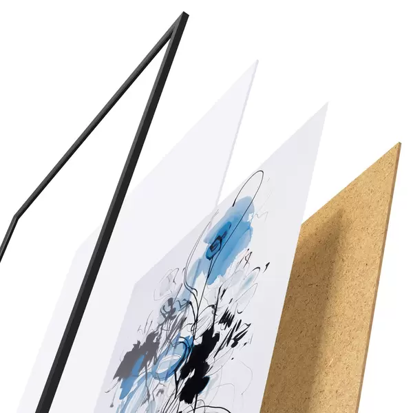 Plagát sa skladá z rámu, plexiskla, vytlačeného obrazu a podkladu z drevotriesky. Plagát možno okamžite zavesiť na stenu vďaka úchytom na zadnej strane.