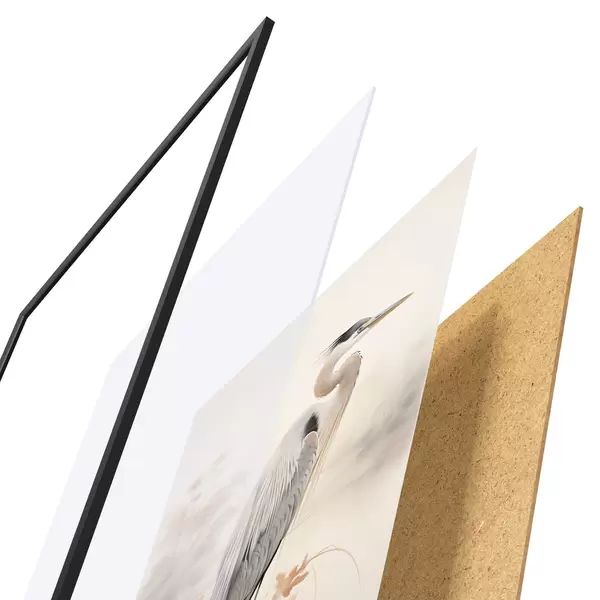 Plagát sa skladá z rámu, plexiskla, vytlačeného obrazu a podkladu z drevotriesky. Plagát možno okamžite zavesiť na stenu vďaka úchytom na zadnej strane.