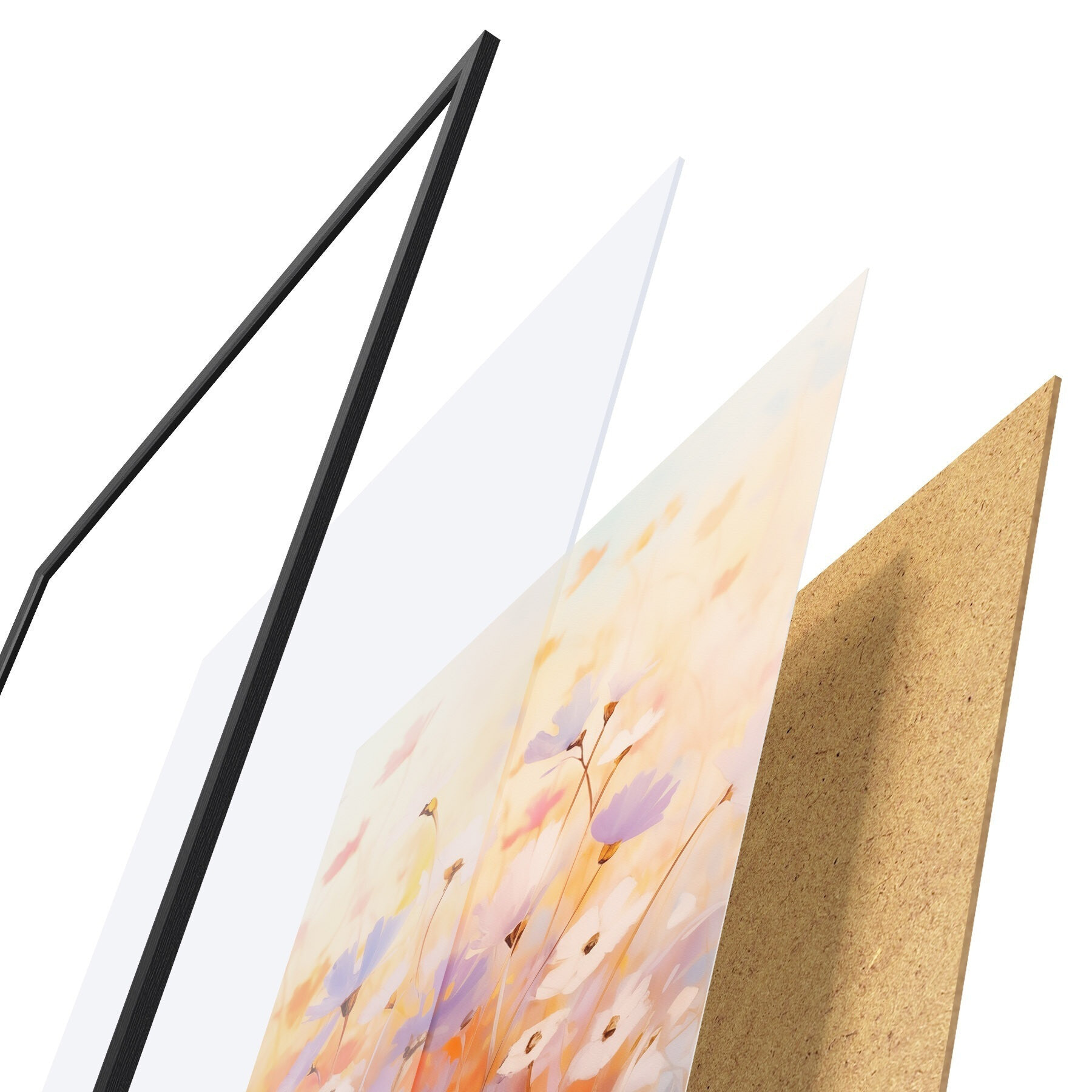 Plagát sa skladá z rámu, plexiskla, vytlačeného obrazu a podkladu z drevotriesky. Plagát možno okamžite zavesiť na stenu vďaka úchytom na zadnej strane.