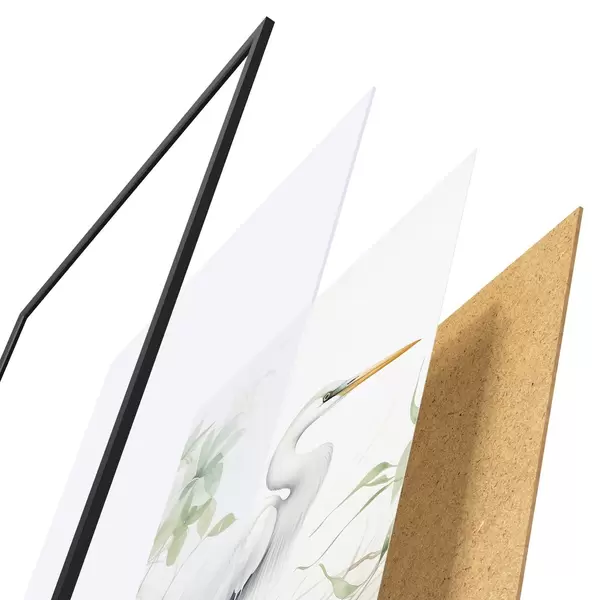 Plagát sa skladá z rámu, plexiskla, vytlačeného obrazu a podkladu z drevotriesky. Plagát možno okamžite zavesiť na stenu vďaka úchytom na zadnej strane.