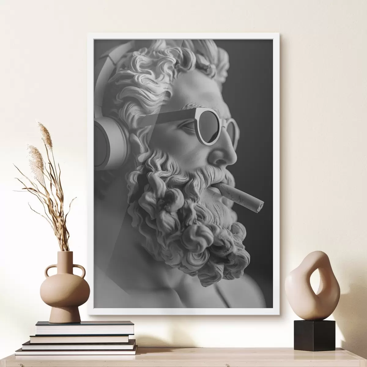 Plagát sa skladá z rámu, plexiskla, vytlačeného obrazu a podkladu z drevotriesky. Plagát možno okamžite zavesiť na stenu vďaka úchytom na zadnej strane.