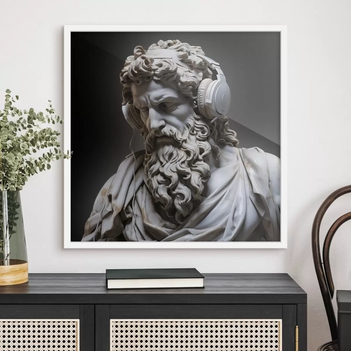 Plagát sa skladá z rámu, plexiskla, vytlačeného obrazu a podkladu z drevotriesky. Plagát možno okamžite zavesiť na stenu vďaka úchytom na zadnej strane.