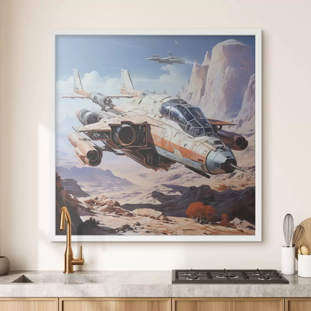 Plagát sa skladá z rámu, plexiskla, vytlačeného obrazu a podkladu z drevotriesky. Plagát možno okamžite zavesiť na stenu vďaka úchytom na zadnej strane.