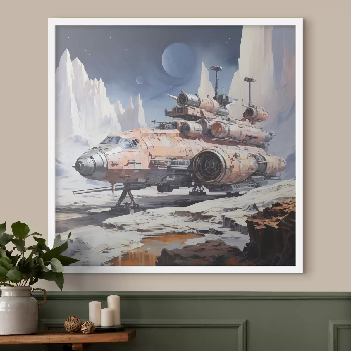 Plagát sa skladá z rámu, plexiskla, vytlačeného obrazu a podkladu z drevotriesky. Plagát možno okamžite zavesiť na stenu vďaka úchytom na zadnej strane.