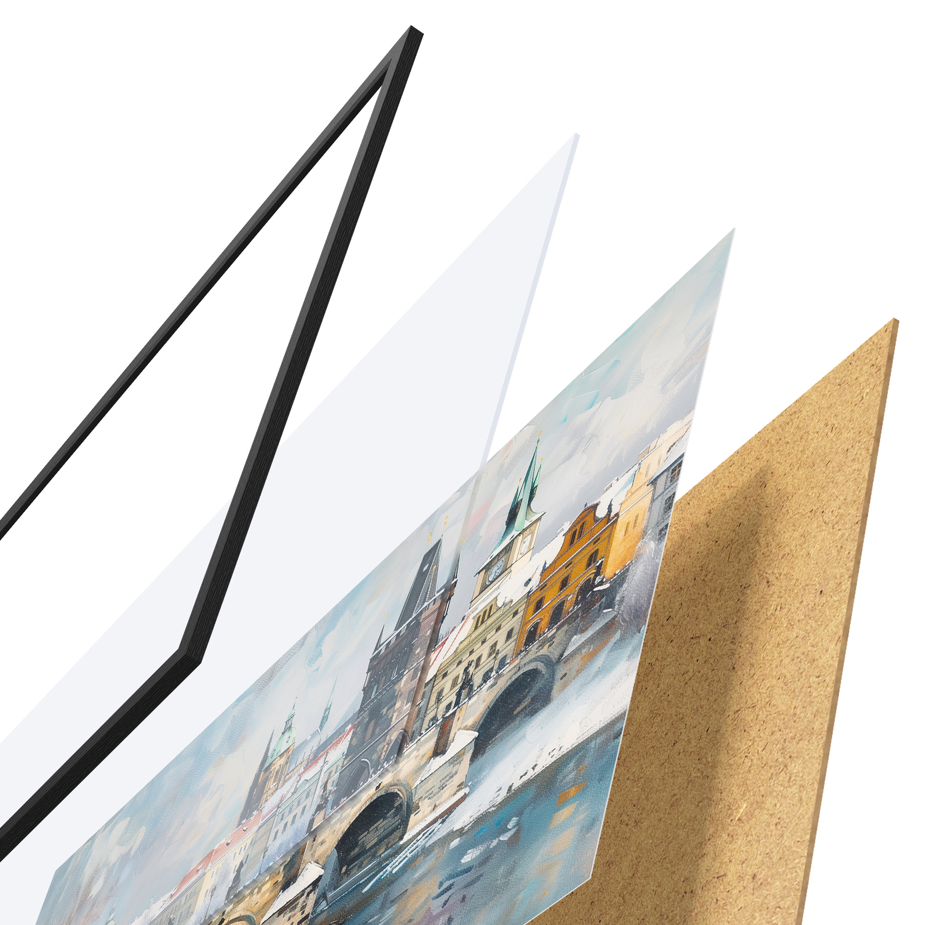 Plagát sa skladá z rámu, plexiskla, vytlačeného obrazu a podkladu z drevotriesky. Plagát možno okamžite zavesiť na stenu vďaka úchytom na zadnej strane.