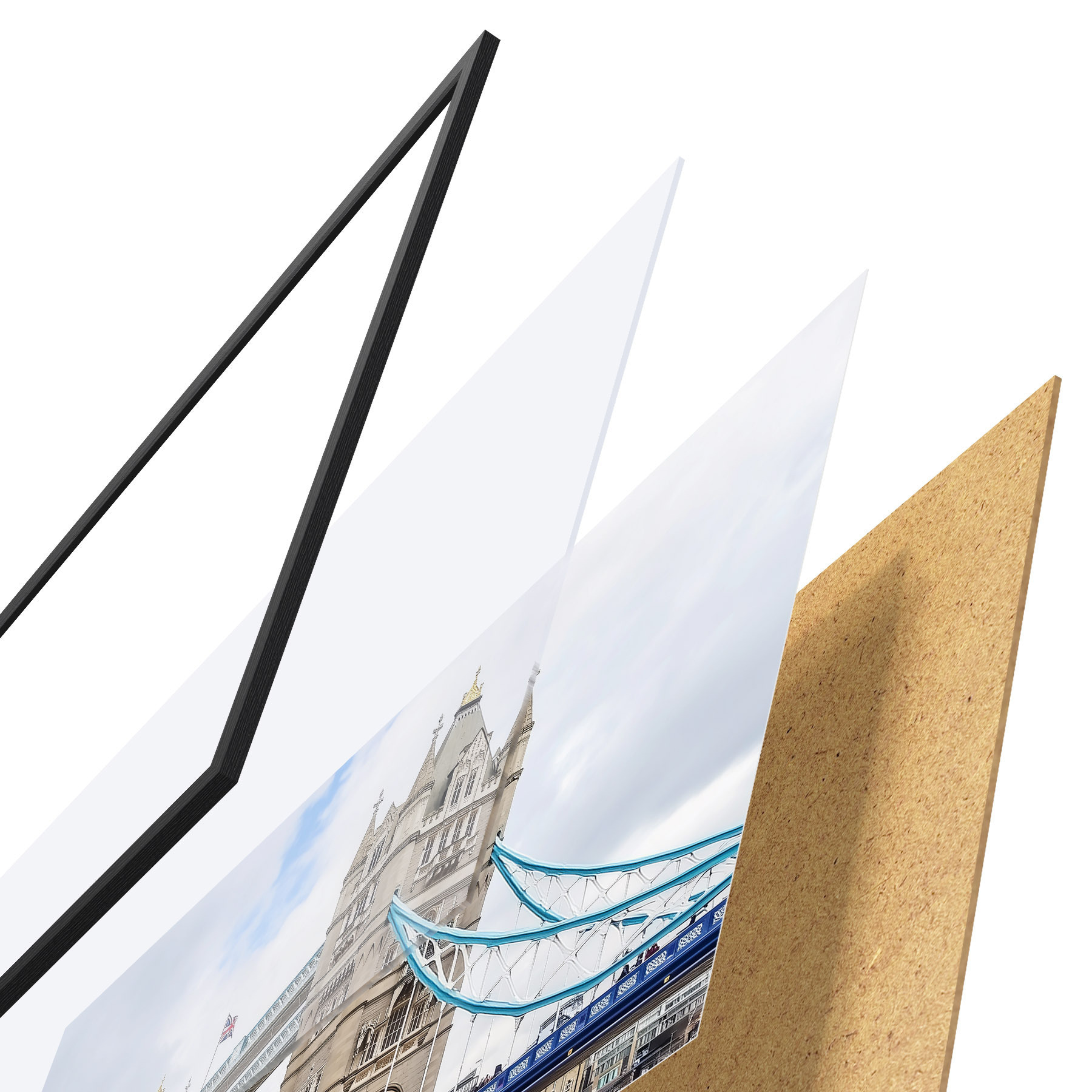 Plagát sa skladá z rámu, plexiskla, vytlačeného obrazu a podkladu z drevotriesky. Plagát možno okamžite zavesiť na stenu vďaka úchytom na zadnej strane.