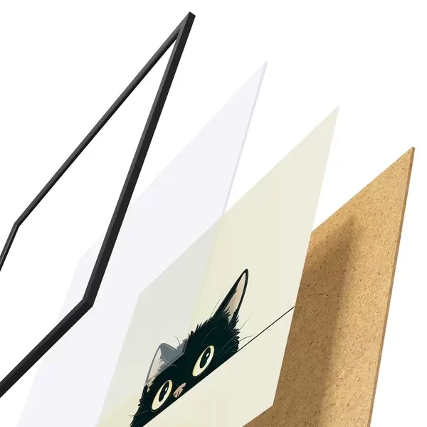 Plagát sa skladá z rámu, plexiskla, vytlačeného obrazu a podkladu z drevotriesky. Plagát možno okamžite zavesiť na stenu vďaka úchytom na zadnej strane.