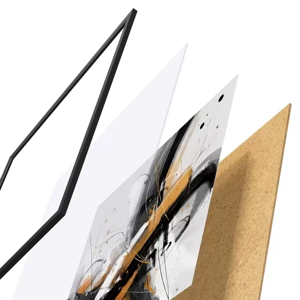 Plagát sa skladá z rámu, plexiskla, vytlačeného obrazu a podkladu z drevotriesky. Plagát možno okamžite zavesiť na stenu vďaka úchytom na zadnej strane.