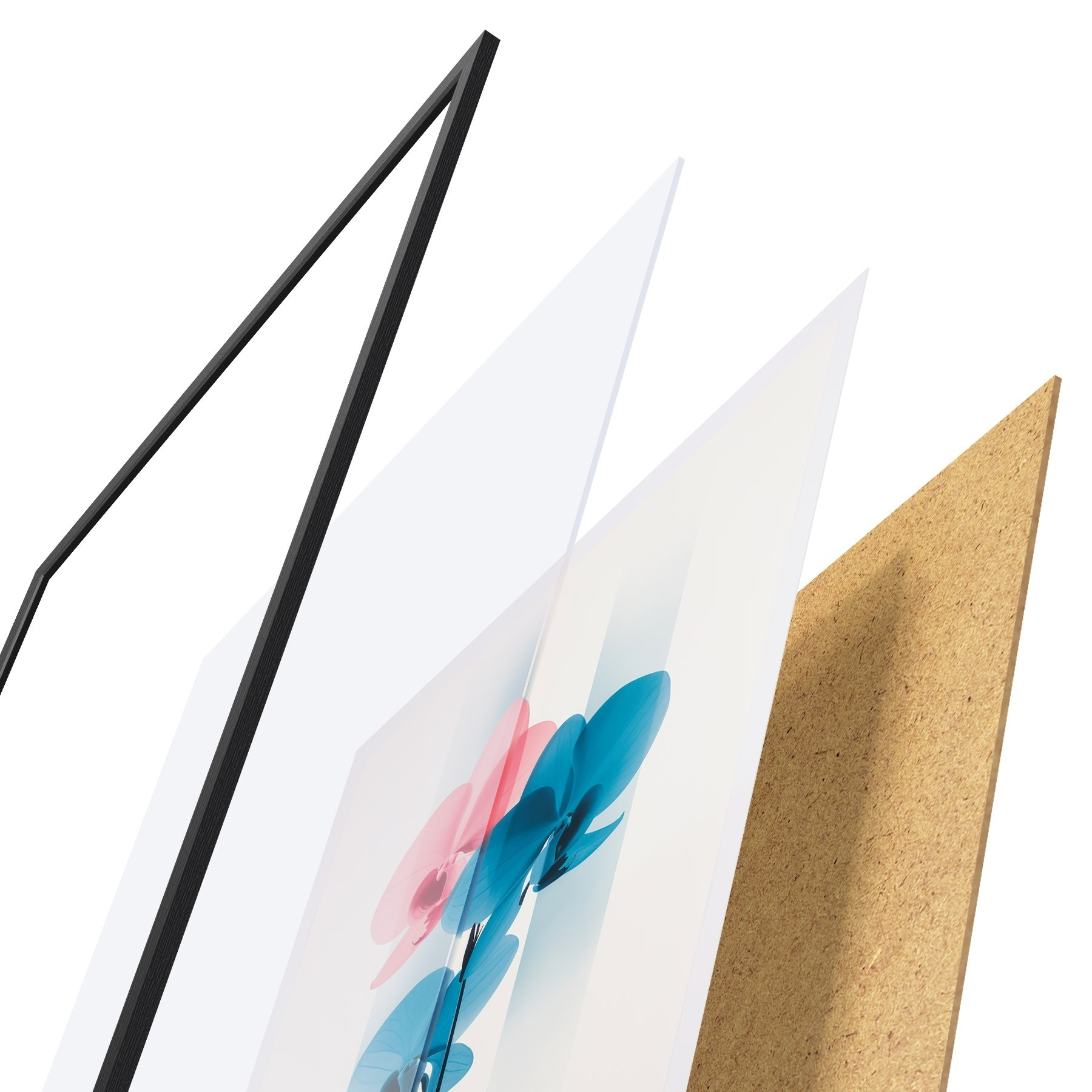 Plagát sa skladá z rámu, plexiskla, vytlačeného obrazu a podkladu z drevotriesky. Plagát možno okamžite zavesiť na stenu vďaka úchytom na zadnej strane.