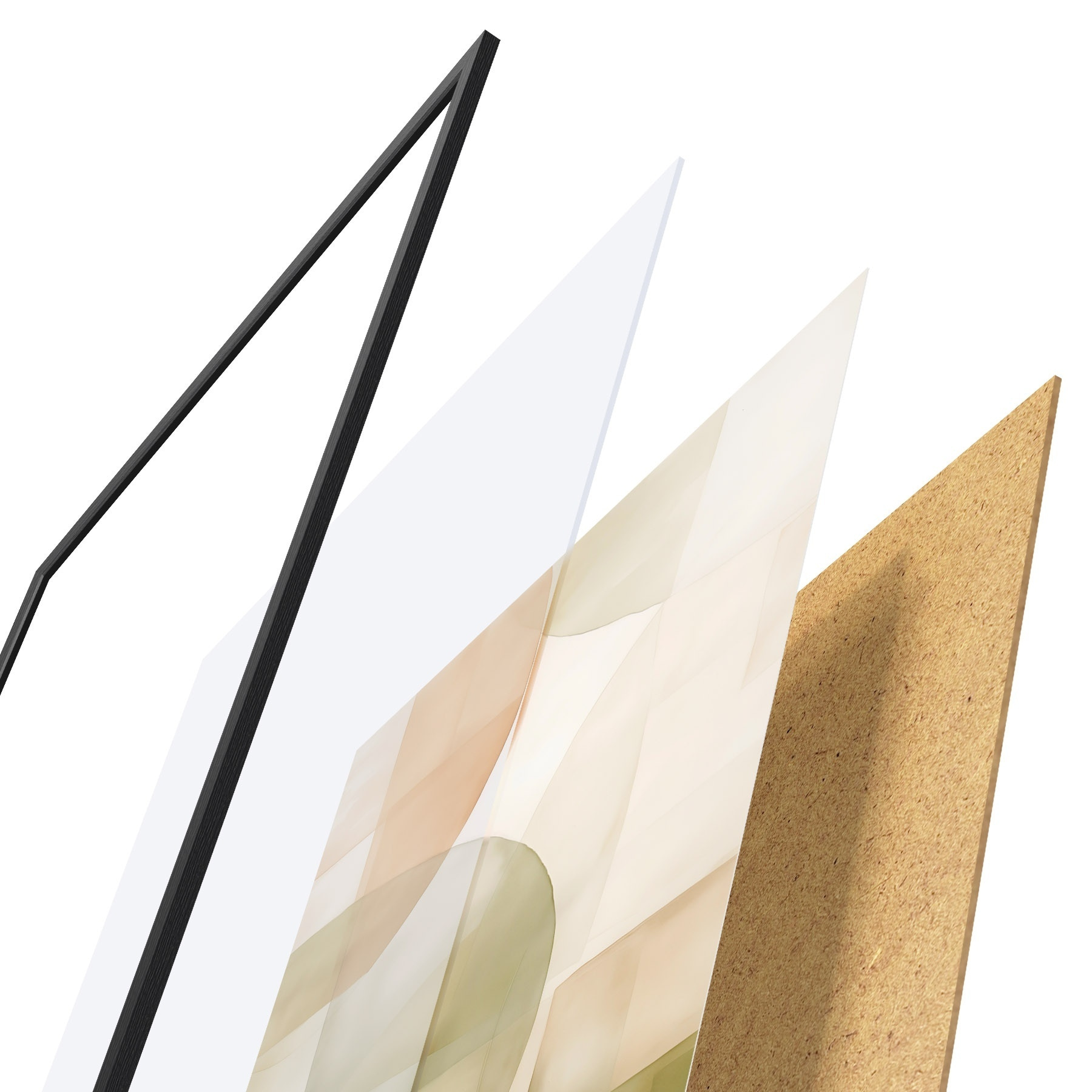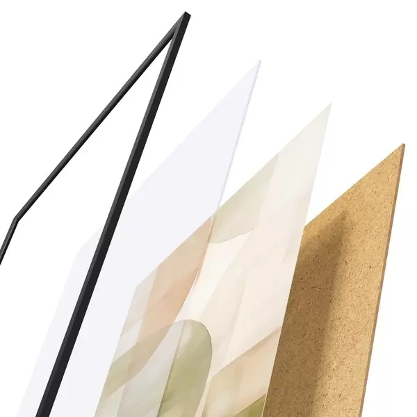 Plagát sa skladá z rámu, plexiskla, vytlačeného obrazu a podkladu z drevotriesky. Plagát možno okamžite zavesiť na stenu vďaka úchytom na zadnej strane.