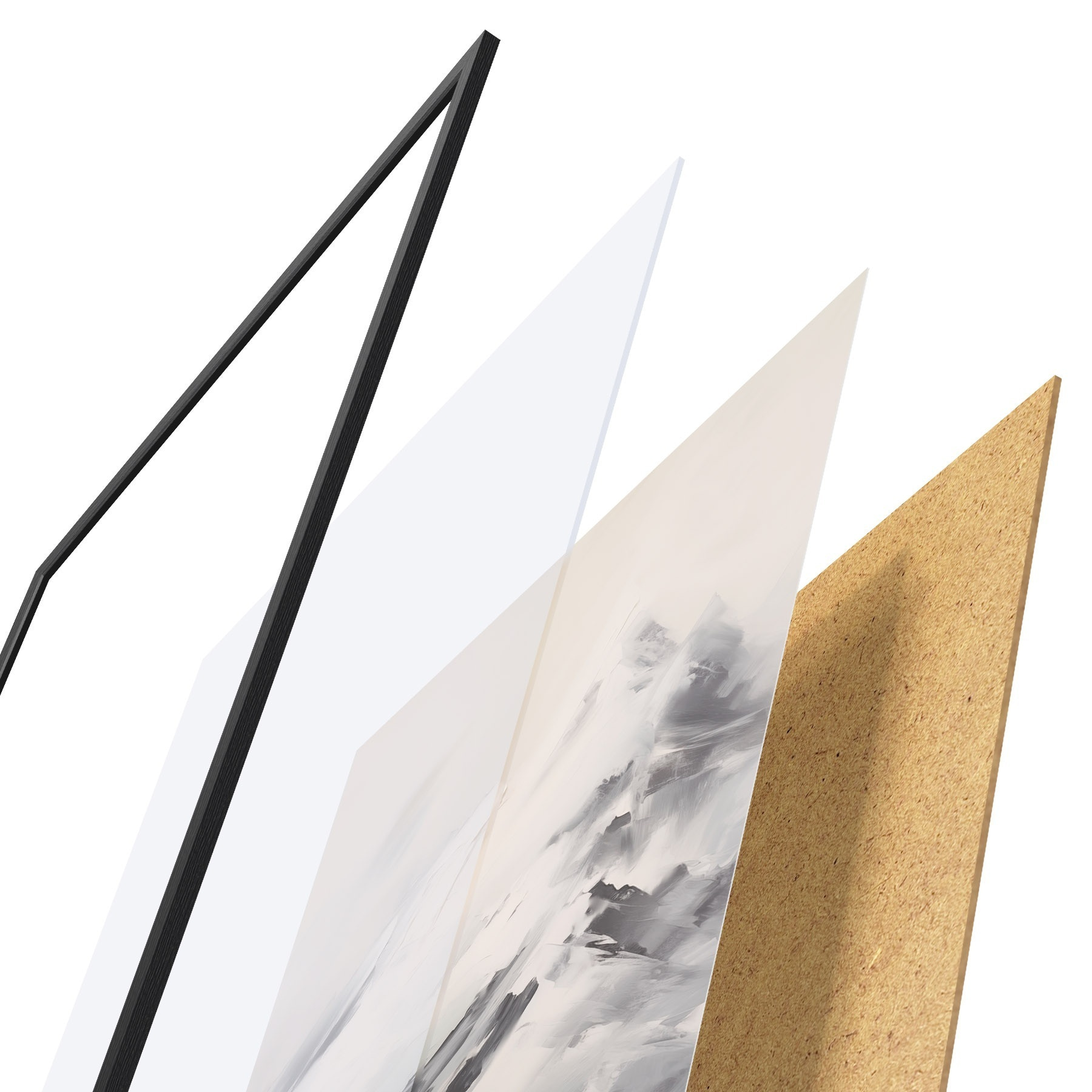 Plagát sa skladá z rámu, plexiskla, vytlačeného obrazu a podkladu z drevotriesky. Plagát možno okamžite zavesiť na stenu vďaka úchytom na zadnej strane.