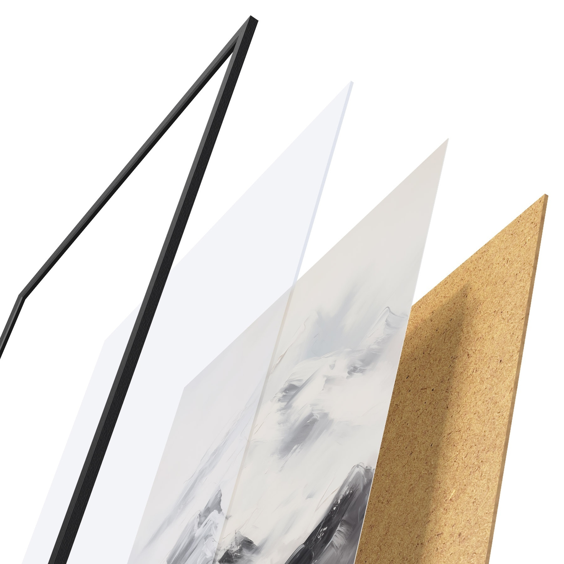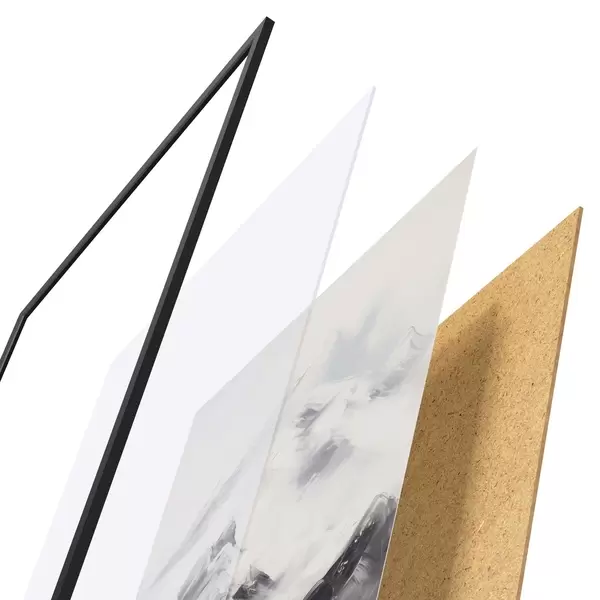Plagát sa skladá z rámu, plexiskla, vytlačeného obrazu a podkladu z drevotriesky. Plagát možno okamžite zavesiť na stenu vďaka úchytom na zadnej strane.