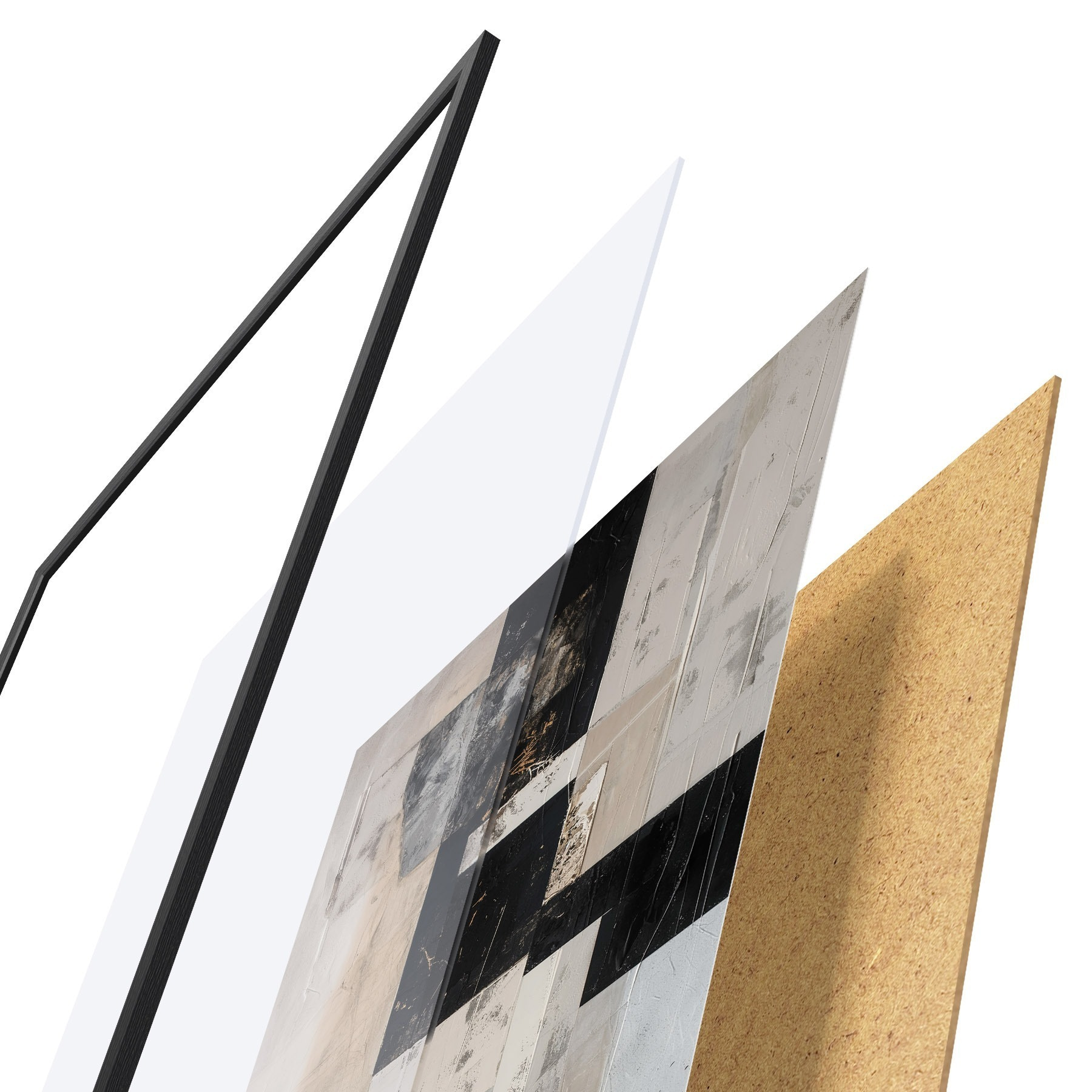 Plagát sa skladá z rámu, plexiskla, vytlačeného obrazu a podkladu z drevotriesky. Plagát možno okamžite zavesiť na stenu vďaka úchytom na zadnej strane.