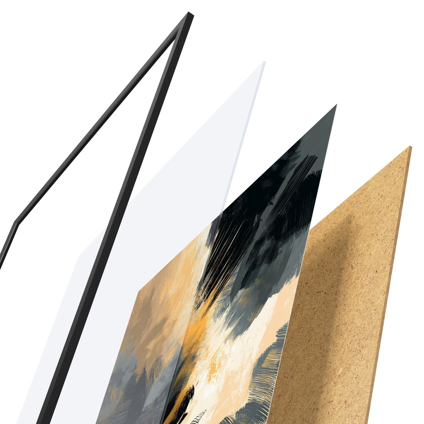 Plagát sa skladá z rámu, plexiskla, vytlačeného obrazu a podkladu z drevotriesky. Plagát možno okamžite zavesiť na stenu vďaka úchytom na zadnej strane.