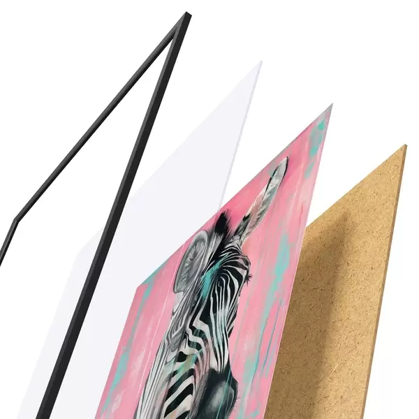 Plagát sa skladá z rámu, plexiskla, vytlačeného obrazu a podkladu z drevotriesky. Plagát možno okamžite zavesiť na stenu vďaka úchytom na zadnej strane.